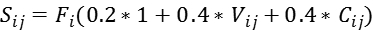 其中,i表示期刊,j表示论文;S表示得分,F为期刊的影响因子,V为专家投票,C为文献被引用次数;0.2为文献发表的权数(即发表分),0.4为专家票的权数,0.4为被引次数的权数。