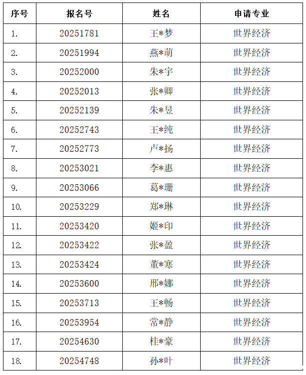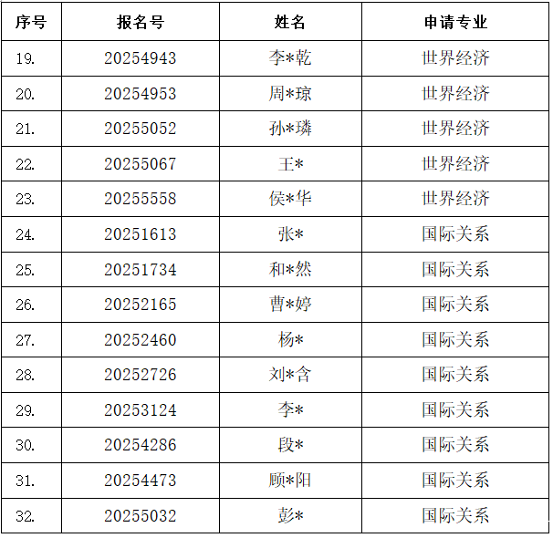 经材料审查以及世界经济与政治系博士研究生招生工作领导小组审核,世界经济与政治系2025年申请考核招考博士研究生入围综合考核名单已确定,现予以公示。