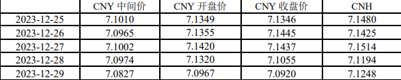 在过去一周时间里,人民币对美元汇率收盘价维持在7.0920-7.1445,周内升值。CNY与CNH交错发展,CNY开盘价高于中间价发展。