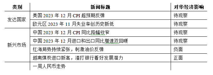 * 中国外部经济环境监测(CEEM),2024年1月8日-2024年1月14日