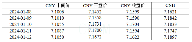 在过去一周时间里,人民币对美元汇率收盘价维持在7.1590-7.1704,总体保持稳定。CNY高于CNH发展,CNY开盘价高于中间价发展。